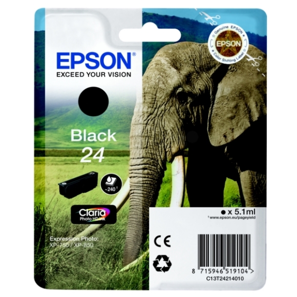 Epson C13T24214010 - 24 Tintenpatrone schwarz, 360 Seiten, Inhalt 5,1 ml für Expression Photo XP 750/850