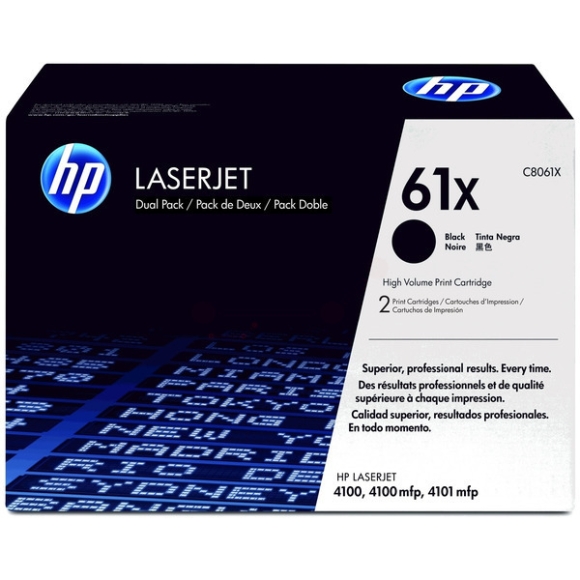HP C8061D - 61X Tonerkartusche schwarz Doppelpack, 10.000 Seiten ISO/IEC 19752 VE=2 für HP LaserJet 4100