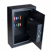 High Security Outdoor-Schlüsselkasten für 50 Schlüssel inkl. elektronischem Zahlenschloss -High Security Schlüsselkasten mit einer Türstärke von 4mm und einer Wandstärke von 2mm für bis zu 50 Schlüssel -Ist für die Montage an einer Außenwand vorgesehen -Mit Elektronikschloss: Komfortables und sicheres Öffnen und Schließen mit einer frei wählbaren Zahlenkombination (inkl. Notschlüssel, Code kann durch Reset-Button verändert werden). -Mit Hakenleisten und Nummerierung -Inkl. Befestigungsmaterial und 50 Schlüsselanhängern (Farblich sortiert) -Robustes und langlebiges Stahlblechgehäuse, pulverbeschichtet -Farbe: dunkelgrau -Maße (HxBxT): 13,2 x 31 x 50 cm -Gewicht: 10 kg -Befestigung: 4 Bohrungen in der Rückwand -WEEE-Reg.-Nr. DE32265825 -Lieferung ohne Batterien (4 x 1,5 V AA)