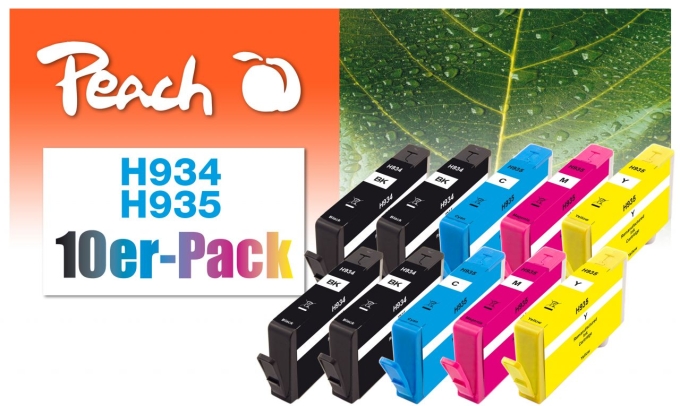 100% Neuer Chip inkl. Tintenstandsanzeige.2 x Peach Tintenpatrone cyan kompatibel zu HP No. 935 c, C2P20A4 x Peach Tintenpatrone schwarz kompatibel zu HP No. 934 bk, C2P19A2 x Peach Tintenpatrone gelb kompatibel zu HP No. 935 y, C2P22A2 x Peach Tintenpatrone magenta kompatibel zu HP No. 935 m, C2P21APeach ist eine führende Schweizer Marke für kompatible Tintenpatronen. Spitzentechnologie gewährleistet höchste Qualität und führt zu herrvoragenden Ergebnissen. Farb- und Lichtechtheit entsprechen höchsten Anforderungen und gewährleisten brillante Druckresultate. Um die Premium Qualität sicherzustellen, wird die Tinte im eigenen Entwicklungszentrum in der Schweiz entwickelt und anschliessend in unseren Fertigungsstandorten in die Tintenpatronen abgefüllt. Produktion und Fertigung entsprechen neusten Erkenntnissen aus Lehre und Forschung. Qualität, mit der asiatische Hersteller nicht gleichziehen können und dies zu immer noch sehr attraktiven Preisen. Eine echte Alternative zu teuren Original Produkten oder Billigsttinten.