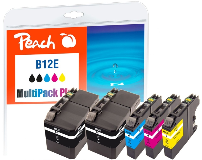5 Tintenpatronen (2xbk).1.00 x Peach Tintenpatrone cyan, kompatibel zu Brother LC-12EC2.00 x Peach Tintenpatrone schwarz, kompatibel zu Brother LC-12EBK1.00 x Peach Tintenpatrone gelb, kompatibel zu Brother LC-12EY1.00 x Peach Tintenpatrone magenta, kompatibel zu Brother LC-12EMPeach ist eine führende Schweizer Marke für kompatible Tintenpatronen. Spitzentechnologie gewährleistet höchste Qualität und führt zu herrvoragenden Ergebnissen. Farb- und Lichtechtheit entsprechen höchsten Anforderungen und gewährleisten brillante Druckresultate. Um die Premium Qualität sicherzustellen, wird die Tinte im eigenen Entwicklungszentrum in der Schweiz entwickelt und anschliessend in unseren Fertigungsstandorten in die Tintenpatronen abgefüllt. Produktion und Fertigung entsprechen neusten Erkenntnissen aus Lehre und Forschung. Qualität, mit der asiatische Hersteller nicht gleichziehen können und dies zu immer noch sehr attraktiven Preisen. Eine echte Alternative zu teuren Original Produkten oder Billigsttinten.