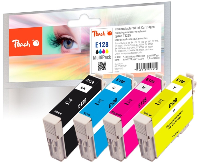 Peach Spar Packs - Sparen Sie zusätzlich gegenüber dem Einzelkauf!4 Tintenpatronen.1 x Peach Tintenpatrone gelb kompatibel zu Epson T1284 y, C13T128440111 x Peach Tintenpatrone magenta kompatibel zu Epson T1283 m, C13T128340111 x Peach Tintenpatrone cyan kompatibel zu Epson T1282 c, C13T128240111 x Peach Tintenpatrone schwarz kompatibel zu Epson T1281 bk, C13T12814011Peach ist eine führende Schweizer Marke für kompatible Tintenpatronen. Spitzentechnologie gewährleistet höchste Qualität und führt zu herrvoragenden Ergebnissen. Farb- und Lichtechtheit entsprechen höchsten Anforderungen und gewährleisten brillante Druckresultate. Um die Premium Qualität sicherzustellen, wird die Tinte im eigenen Entwicklungszentrum in der Schweiz entwickelt und anschliessend in unseren Fertigungsstandorten in die Tintenpatronen abgefüllt. Produktion und Fertigung entsprechen neusten Erkenntnissen aus Lehre und Forschung. Qualität, mit der asiatische Hersteller nicht gleichziehen können und dies zu immer noch sehr attraktiven Preisen. Eine echte Alternative zu teuren Original Produkten oder Billigsttinten.