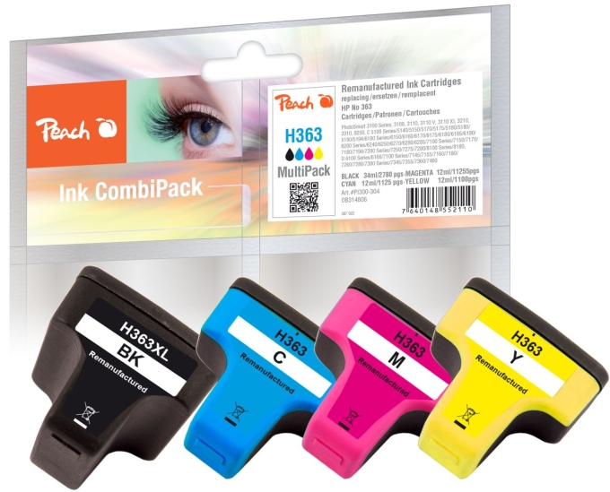 Peach Spar Packs - Sparen Sie zusätzlich gegenüber dem Einzelkauf!100% Neuer Chip inkl. Tintenstandsanzeige.1 x Peach Tintenpatrone magenta kompatibel zu HP No. 363 m, C8772EE1 x Peach Tintenpatrone gelb kompatibel zu HP No. 363 y, C8773EE1 x Peach Tintenpatrone cyan kompatibel zu HP No. 363 c, C8771EE1 x Peach Tintenpatrone schwarz HC kompatibel zu HP No. 363XL bk, C8719EEPeach ist eine führende Schweizer Marke für kompatible Tintenpatronen. Spitzentechnologie gewährleistet höchste Qualität und führt zu herrvoragenden Ergebnissen. Farb- und Lichtechtheit entsprechen höchsten Anforderungen und gewährleisten brillante Druckresultate. Um die Premium Qualität sicherzustellen, wird die Tinte im eigenen Entwicklungszentrum in der Schweiz entwickelt und anschliessend in unseren Fertigungsstandorten in die Tintenpatronen abgefüllt. Produktion und Fertigung entsprechen neusten Erkenntnissen aus Lehre und Forschung. Qualität, mit der asiatische Hersteller nicht gleichziehen können und dies zu immer noch sehr attraktiven Preisen. Eine echte Alternative zu teuren Original Produkten oder Billigsttinten.