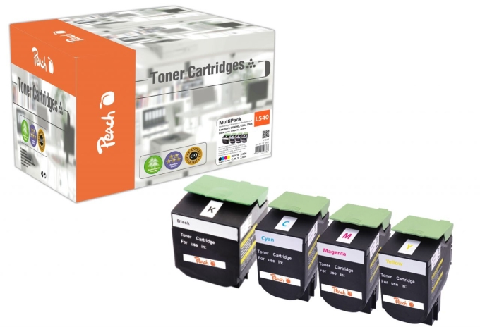 Peach Spar Packs - Sparen Sie zusätzlich gegenüber dem Einzelkauf!4 Tonermodule.1 x Peach Tonermodul gelb kompatibel zu Lexmark C540H2YG1 x Peach Tonermodul magenta kompatibel zu Lexmark C540H2MG1 x Peach Tonermodul cyan kompatibel zu Lexmark C540H2CG1 x Peach Tonermodul schwarz kompatibel zu Lexmark C540H2KGTonermodule von Peach garantieren langfristig einwandfreie Ausdrucke ohne Qualitätsverlust. Es handelt sich um wiederaufbereitete Produkte, wobei alle Verschleissteile vollständig ausgetauscht werden. Qualität die Sie spüren!