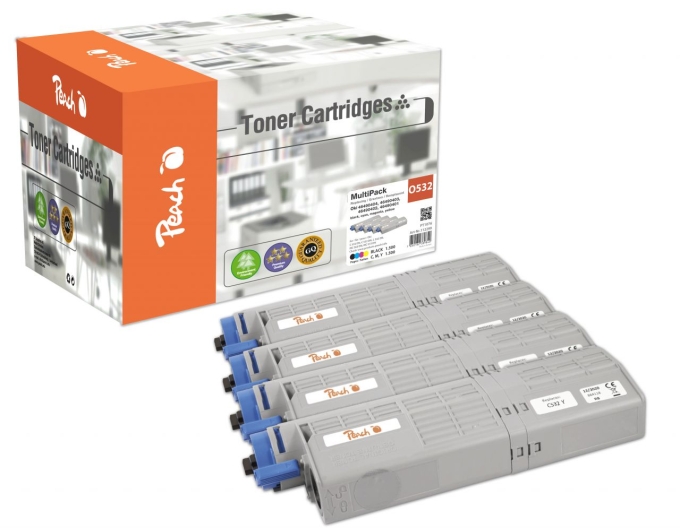 Peach Spar Packs - Sparen Sie zusätzlich gegenüber dem Einzelkauf!4 Tonermodule.1.00 x Peach Tonermodul magenta kompatibel zu OKI 464904021.00 x Peach Tonermodul cyan kompatibel zu OKI 464904031.00 x Peach Tonermodul gelb kompatibel zu OKI 464904011.00 x Peach Tonermodul schwarz kompatibel zu OKI 46490404Tonermodule von Peach garantieren langfristig einwandfreie Ausdrucke ohne Qualitätsverlust. Es handelt sich um wiederaufbereitete Produkte, wobei alle Verschleissteile vollständig ausgetauscht werden. Qualität die Sie spüren!