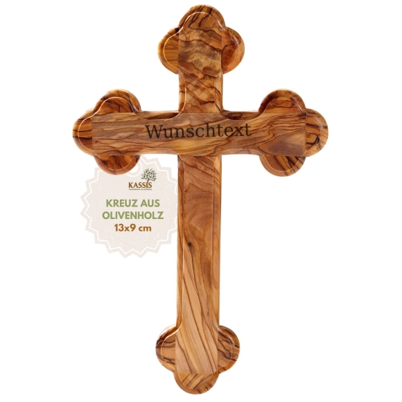 Personalisiertes Kreuz mit runden Kanten aus Olivenholz