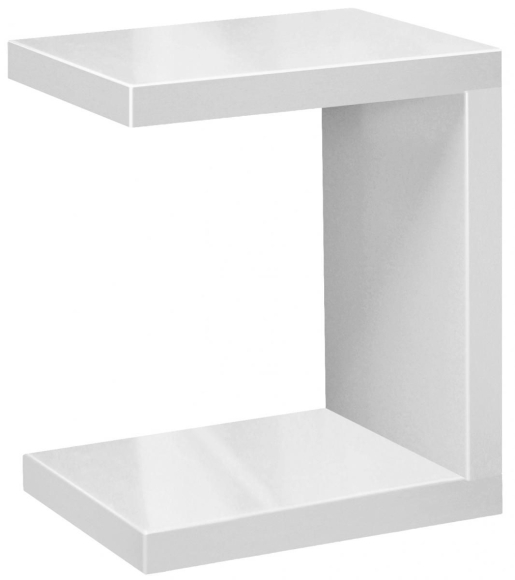 Beistelltisch "Solina" in C-Form, Schraubenlos, Weiss Hochglanz, von phoenix, designed in der Schweiz, modernes und zeitloses DesignHIGHLIGHTSB/H/T: 50x58x40cmBeistelltisch mit 2 AblagenAuch Nachttisch, Couchtisch verwendbarWeiss HochglanzSchraubenlose C-Formzeitloses DesignMATERIALSpanplatte hochglanz lackiert