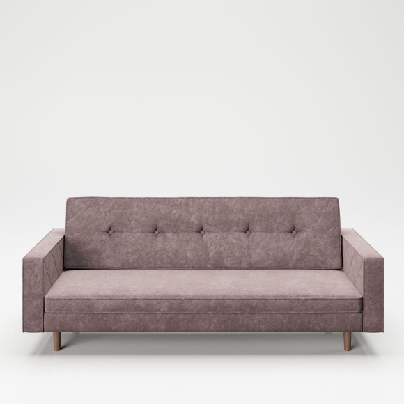 Playboy Bettsofa SHIRLEY RosaDas Bett-Sofa  "Shirley"  aus der PLAYBOY-HOME Kollektion ist im Club-Stil der 60er Jahre gehalten. Das gepolsterte Schlafsofa aus rosa  Samtstoff mit hochwertigem Keder und dem Fuss aus Masssivholz runden das Retro-Design vollkommen ab. Das bequeme 3er Sofa mit Schlaffunktion eignet sich besonders gut in der Lounge, Wohn- und Essbereich, im Gästezimmer oder in der Diele. Die weiche Rückenlehnen und der Sitz passen sich punktelastisch an und sind auch nach langem Sitzen noch sehr bequem. Durch die Klappfunktion ist die Couch im handumdrehen zum Bett umgebaut.  Alle Artikel der PLAYBOY-HOME Kollektion sind farblich und im Design aufeinander abgestimmt. Alle Möbel und Accessoires ergeben zusammen ein wertiges Gesamtkonzept. HIGHLIGHTS B/H/T: 200x80x81cm Sitzhöhe: 44 cm Liegefläche: 180x104cm Federkern gepolsterter Sitz-, Arm- und Rückenlehne Samtstoff in Rosa mit wertiger Stickung und Keder stabile Massivholzfüsse (Walnuss) Belastbarkeit bis 250kg Vintage-Stil der 60er Jahre PLAYBOY Retro-Design MATERIAL schadstoffgesprüfter Schaumstoff, Polyester Massivholz, Sperrholz Sprungfederkern Alle Artikel der PLAYBOY-HOME Kollektion sind farblich und im Design aufeinander abgestimmt. Alle Möbel und Accessoires ergeben zusammen ein wertiges und stimmiges Gesamtkonzept.