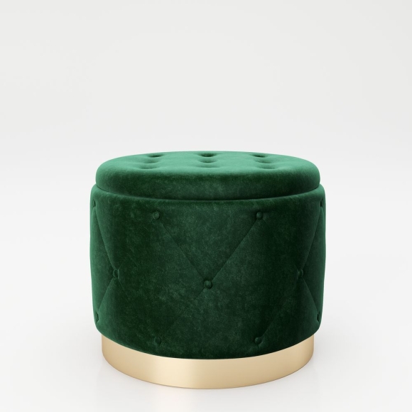 Playboy runder Pouf LIZDer Pouf  "Liz"  aus der PLAYBOY-HOME Kollektion ist im Club-Stil der 60er Jahre gehalten. Der gepolsterte Hocker aus grünem Samtstoff kombiniert mit Chesterfiel-Optik und dem goldenen Metallfuss runden das Retro-Design vollkommen ab. Der bequeme Sitzhocker eignet sich besonders gut im Wohn- und Essbereich, im Eingangsbereich oder in der Lounge.  Der super weiche Sitz passt sich punktelastisch an und sind auch nach langem Sitzen noch sehr bequem. Der Pouf bietet durch den abnehmbaren Deckel ebenfalls genügend Stauraum für Ihre Dinge. HIGHLIGHTSB/H/T: 50x40x50mSitzhöhe: 40cmSamtstoff in Grün mit wertiger Chesterfield-Optikmit Stauraum durch abnehmbaren Sitz/DeckelMetallfuss in GoldBelastbarkeit bis 80kgVintage-Stil der 60er JahrePLAYBOY Retro-Design MATERIALSchaumstoff, PolyesterSperrholzMetall Alle Artikel der PLAYBOY-HOME Kollektion sind farblich und im Design aufeinander abgestimmt. Alle Möbel und Accessoires ergeben zusammen ein wertiges und stimmiges Gesamtkonzept.