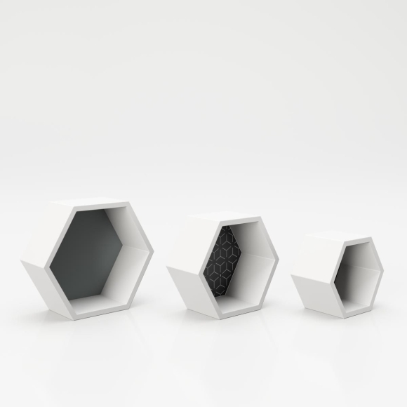 Playboy Wandregal TAILORDas Wandregal "Tailor" aus der PLAYBOY-HOME Kollektion ist im Club-Stil der 60er Jahre gehalten. Der weisse Korpus kombiniert mit der dunklen Rückwand und dem BUNNY Print sowie die Hexagon-Form runden das Retro-Design vollkommen ab. Das praktische 3er Set bieten genügend Ablagefläche für Ihre kleine Dinge. Die einzelnen Regale sind in unterschiedlichen Grössen gehalten. HIGHLIGHTSB/H/T: 30x12x26m / 25.6x12x22cm / 20.5x12x17.8cm3er Setfarbige Rückwand im PLAYBOY DesignHexagin Formweisser KorpusVintage-Stil der 60er JahrePLAYBOY Retro-Design MATERIAL100% FSC zertifiziertes MDF, NC Lackierung Alle Artikel der PLAYBOY-HOME Kollektion sind farblich und im Design aufeinander abgestimmt. Alle Möbel und Accessoires ergeben zusammen ein wertiges und stimmiges Gesamtkonzept.