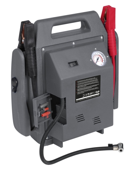 Powerplus 4 in 1 Starthilfe und Powerstation Kapazität von ca. 7.000 mAh Dank angenehmen Handgriff lässt sich die Powerstation leicht und überall mit hinnehmen 4 in 1: Kompressor, KFZ-Starthilfe, 12 V Stromquelle und 3,6 W Licht 12 V Ausgang mit Überlastungsschutz für sicheres Arbeiten Mit Luftadapter und Fach hinten am Gerät Max. Druck 17 barMaße  Ca. 17 x 36,5 x 34,5 cmLieferumfang 1x Powerplus  4 in 1 Starthilfe und Powerstation 1x LuftadapterHinweis: Bitte beachten, dass sich dieses Gerät nicht für Elektroautos eignet. Bei Hybridfahrzeugen wird empfohlen, zuerst die Betriebsanleitung oder den Händler zu befragen.