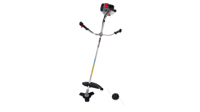 Diese(r) 2-in-1-Motorsense/Rasentrimmer besitzt einen kräftigen 42,7-cc-Motor und einen großen Benzintank mit 950 ml. Sie können also völlig frei im Garten arbeiten, ganz gleich, ob Sie nun zähe, hohe Gräser oder junge Strauchtriebe mähen oder Rasenkanten ganz exakt trimmen möchten. Außerdem macht es Spaß, mit diesem 2-in-1-Gartengerät dank seiner geringen Motorvibrationen und dem einfachen Start mit Vorpumpen zu arbeiten. Aber auch an Ihren Komfort und Ihre Sicherheit wurde mit der Schutzkappe, dem Fahrradlenkergriff mit separat einstellbaren Handgriffen und dem Tragegeschirr mit Hüft- und Schulterriemen gedacht, die Sie ganz einfach und schnell einrasten lassen können. Der Rasentrimmer besitzt eine Spule mit doppeltem Faden von Ø2 mm x 5m mit Klopf-Go-Bedienung. Mit einem leichten Anticken auf dem Boden wird automatisch der Faden verlängert. Um den Rasentrimmer in eine Motorsense zu verwandeln, tauschen Sie die Spule gegen eine Mähscheibe mit einer Mähbreite von 255 mm aus.