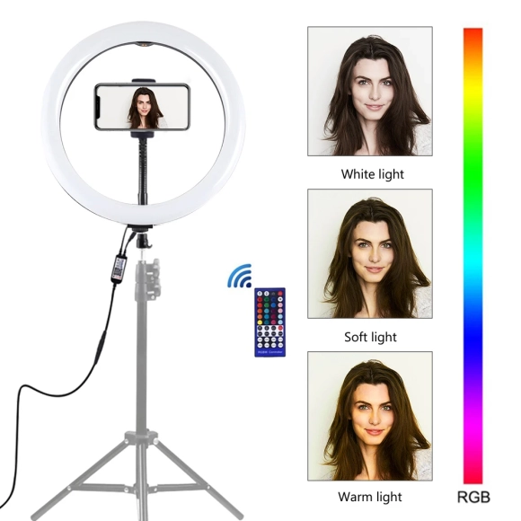 PULUZ 12 Zoll 30 cm dimmbares RGB-Vollfarb-LED-Selfie-Ringlicht f¨¹r Kamera, Telefon, Fotografie, Video, Make-up, Lampe, Kaltschuh-Stativkopf