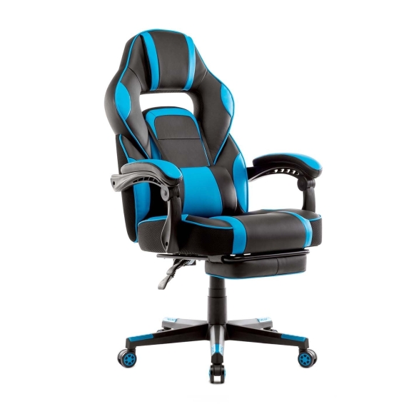 Rally Gaming Stuhl aus Leder mit Einziehbarer Fu?st¨¹tze - Blau