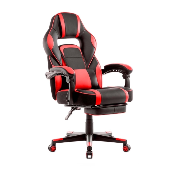 Rally Gaming Stuhl aus Leder mit Einziehbarer Fu?st¨¹tze - Rot