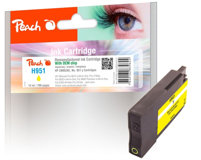 Topangebot: Die Herausfoderung für das Original. Wir empfehlen: Vergleichen und Sparen!Mit OEM Chip exkl. Tintenstandsanzeige.Peach ist eine führende Schweizer Marke für kompatible Tintenpatronen. Spitzentechnologie gewährleistet höchste Qualität und führt zu herrvoragenden Ergebnissen. Farb- und Lichtechtheit entsprechen höchsten Anforderungen und gewährleisten brillante Druckresultate. Um die Premium Qualität sicherzustellen, wird die Tinte im eigenen Entwicklungszentrum in der Schweiz hergestellt und anschliessend am europäischen Fertigungsstandort in die Tintenpatronen abgefüllt. Produktion und Fertigung entsprechen neusten Erkenntnissen aus Lehre und Forschung. Qualität, mit der asiatische Hersteller nicht gleichziehen können und dies zu immer noch sehr attraktiven Preisen. Eine echte Alternative zu teuren Original Produkten oder Billigsttinten.Technische DatenTintenfüllstandsanzeige: NeinFüllmenge: SHersteller: PeachKompatibel zu: HP OfficeJet Pro 251 dw/276 dw/8100 ePrinter/8600 e-All-in-One/8600 Plus e-All-in-One/8600 Premium e-All-in-One/8610 e-All-in-One/8615 e-All-in-One/8616 e-All-in-One/8620 e-All-in-One/8625 e-All-in-One/8630 e-All-in-One/8640 e-All-in-One/8660 e-All-in-One
