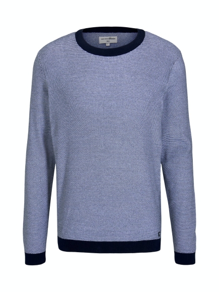 Tom Tailor Denim Pullover für Herrenbequemer Tom Tailor Pullover in grau mit blauen BündchenDetails + Farbe: blau+ gerippter Kragen und Bündchen + strukturierter Stoff + Logopatch Material100% Baumwolle