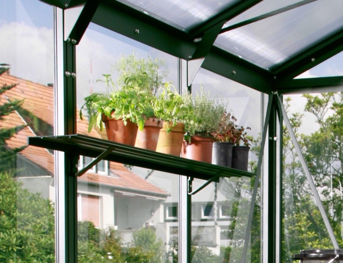 Passgenaues Wandregal aus Aluminium in den gängigen Vitavia Gewächshausfarben