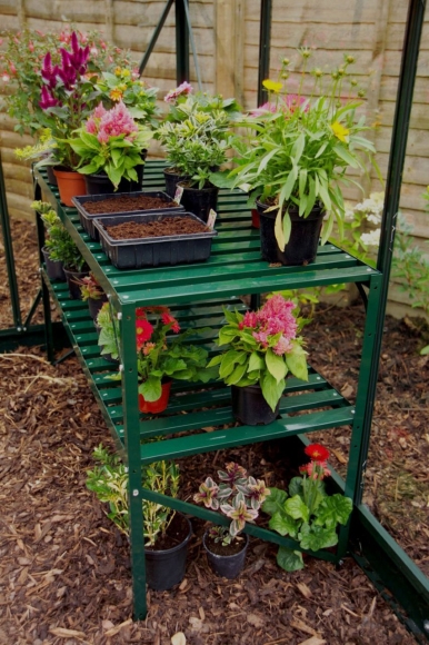 Die Alutische in optimaler Arbeitshöhe bieten mit 54 cm Tiefe fast so viel Platz zum Arbeiten wie eine Standardarbeitsfläche und fügen sich perfekt in kleine und große Gewächshäuser ein – in letzteren werden auch häufig mehrere kombiniert. Die verstrebte Oberfläche lässt Erde einfach durchfallen. Zum Durchwachsen hochwachsender Pflanzen die entsprechenden Alustreben einfach entfernen. Erhältlich in den Farben der Vitavia Gewächshäuser sowie mit einer oder zwei Ablagen. Miteinander und mit den passenden Tischaufsätzen kombinierbar ‚gehören sie zu den wichtigsten Einrichtungsgegenständen im Vitavia Gewächshaus.