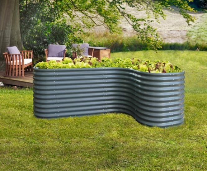 BeschreibungErweiterung Curve für Vitavia Hochbeete aus gewelltem und Zincalume beschichtetem Stahlblech in der Farbe dunkelgrau.Technische Daten:Tiefe: 80 cmBreite: 85,8 cmHöhe: 80 cmGewicht: 15 kgArtikeltyp: ErweiterungssetErweitern Sie Ihr Hochbeet passend zu Ihrem Anbaubedarf  - und passend zu Ihrem Garten: Dank der modularen Bauweise können Sie das Vitavia Hochbeet in seinen beiden Grundformen RUND und BASIC mit weiteren Elementen in Größe und Form entsprechend Ihren Wünschen anpassen.Mit der Erweiterung CURVE vergrößern Sie Ihr Hochbeet  um eine Kurve. Damit fügen Sie dem Beet etwa um 90 Grad versetzt eine zusätzliche Längsseite zu. Die Kurvenerweiterung CURVE wahrt zudem die Stabilität länggseitig verlängerter Hocbeete: Nach max. zwei gerade Erweiterungen STRETCHED sollte eine Kurvenerweiterung CURVE eingebaut werden.