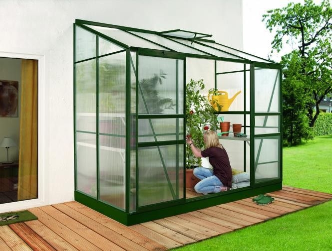 Mit seiner kleinen Grundfläche bei voller Stehhöhe ermöglicht das Anlehngewächshaus Ida auch im Vorgarten, auf der Terrasse oder dem Balkon die Anzucht und den Anbau von Kräutern und Gemüse sowie das Überwintern hoher Kübelpflanzen. Die kleineren Ida Modelle sind in Aluminium eloxiert, Anthrazit (nur 900-3300) oder Smaragd (pulverbeschichtet) erhältlich und werden mit Hohlkammerplatten (HKP) in ca. 4 mm Stärke aus UV-stabilisiertem Polycarbonat (PC) eingedeckt. Die Modelle IDA 900 und 1300 haben eine leichtgängige Schiebetür mit der Breite von 61 cm und einer Höhe von 151 cm, das Modell 3300 hat eine Doppelschiebetür mit der Breite von 122 cm und einer Höhe von 163 cm. Alle drei Modelle sind serienmäßig mit einem Dachfenster ausgestattet. Das Dachfenster dient zur optimalen Be- und Entlüftung. Die Regenrinne gehört zur Standardausstattung. Passend zu allen Modellen ist ein 6 cm hoher Fundamentrahmen aus verzinktem, farbbeschichtetem Stahlblech als Zubehör lieferbar. Die Balkon bzw. Terrassengewächshäuser der Serie Ida können nicht freistehend aufgestellt werden! Eine Hauswand oder stabile Mauer als Rückwand ist notwendig.