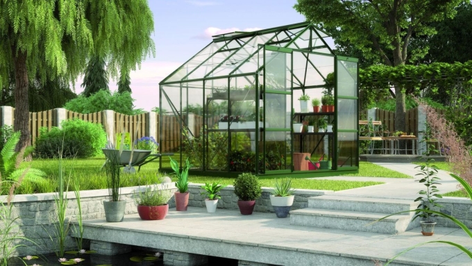 Freiraum zur Entfaltung: für hoch gewachsene Pflanzen. Gärtner haben an dem Uranus viel Freude, weil genug Platz für beide da ist. Das eigene Gewächshaus – der Traum eines jeden Pflanzenliebhabers.Das Uranus ist ein Modell für den fortgeschrittenen Gärtner. Es ist in vier verschiedenen Größen mit den Grundflächen von 6,7 bis 11,5 m2 und in drei Farben erhältlich: Aluminium eloxiert, Smaragd oder Schwarz (pulverbeschichtet). Mit der außergewöhnlichen Firsthöhe von 246 cm und der Traufenhöhe von 151 cm bietet das Uranus auch hohen Pflanzen viel Raum. Bei der Verglasung kann zwischen Einscheibensicherheitsglas (ESG) in 3 mm Stärke und Hohlkammerplatten (HKP) gewählt werden. Die Hohlkammerplatten gibt es in einer Stärke von 4 und 6 mm. Sie bestehen aus UV-stabilisiertem Polycarbonat (PC). Die Dachfensterverglasung der Modelle mit HKP hat eine Stärke vom 4 mm. Hohlkammerplatten bieten durch ihre höhere Isoliereigenschaft mehr Vorteile und Funktionalität als Glas. Sie sind bruchsicherer und leichter. Die leicht milchige Oberfläche bricht das Licht, sodass meist kein Abschattieren notwendig ist. Einscheibensicherheitsglas garantiert stattdessen eine hohe Lichtdurchlässigkeit und besticht durch die „klassische“ Glasoptik. An sonnigen, heißen Tagen sollte das Glas jedoch abschattiert werden, um die Pflanzen vor Verbrennung zu schützen. Gehärtetes Glas bricht nicht scharfkantig und sorgt somit für mehr Sicherheit. Das Modell hat eine leichtgängige, kugelgelagerte Doppelschiebetür mit einer Breite von 122 cm und einer Höhe von 191 cm und ein kittloses Verglasungssystem mit rostfreien Glasfederklammern. Jedes Modell ist serienmäßig mit zwei oder vier Dachfenstern und Regenrinnen ausgestattet.