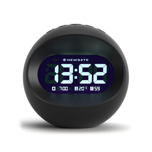Digitaler Wecker mit einem Multifunktionsdisplay. Dieser kugelförmige schwarze LCD-Wecker verfügt über ein elegantes schwarzes Multifunktionsdisplay und verleiht Ihrem Schlafzimmer oder Büro einen modernen und zugleich Retro-Stil. Dieser Wecker im einzigartigen britischen Design verfügt über ein 12- oder 24-Stunden-Display, einen digitalen Alarm, eine Schlummerfunktion und ein Temperaturdisplay.Funktioniert mit AAA-Batterien (nicht enthalten) oder Stromversorgung über USB-Kabel (enthalten). Highlights:. - Abmessungen: 11,5 x 11 x 11,8 cm - Gewicht: 230 g - 12- oder 24-Stunden-Format- Wecker aus Acryl- LCD-Bildschirm- Alarm- und Schlummerfunktion- Temperaturanzeige 0-37°C- Helligkeit des Nachtbildschirms einstellen- Inklusive 1 Meter USB-Stromkabel- Der Bildschirm ist nur dann dauerhaft hintergrundbeleuchtet, wenn er mit dem beiliegenden USB-Kabel oder einem DC-Adapter (nicht im Lieferumfang enthalten) an eine Stromquelle angeschlossen ist. 3 AAA-Batterien (nicht im Lieferumfang enthalt...