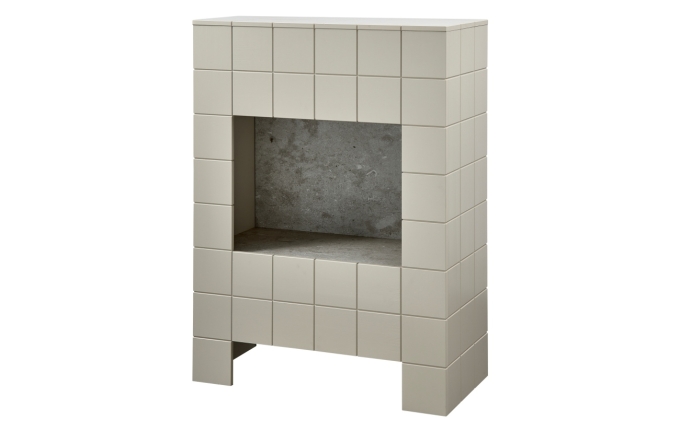 Woood - Deko-Kamin aus Kiefernholz Hellgrau