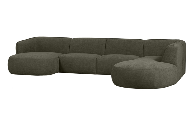 Woood Sofa Polly U-Form aus Webstoff Rechts Grün