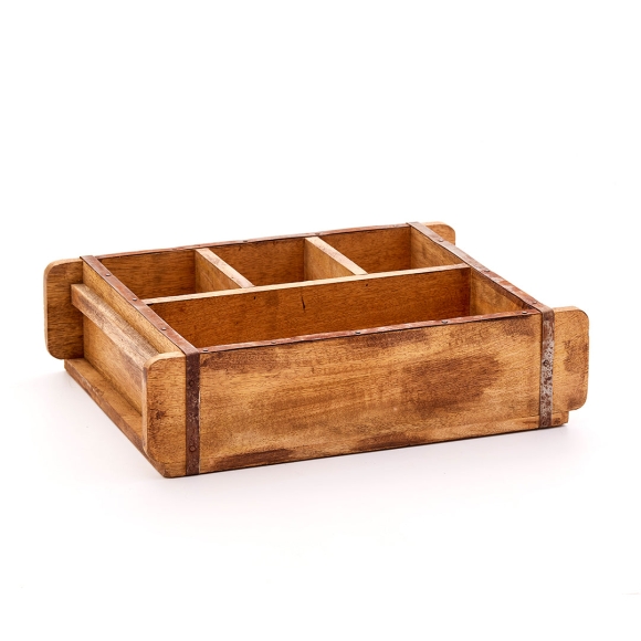 Vielseitig einsetzbar: Ob als Dekokiste, als Pflanzkiste oder zum Aufbewahren von Gewürzen oder Kostbarkeiten - die vintage Ziegelform mit zwei Kammern kannst du vielseitig nutzen und sie sieht dabei immer gut aus. Wir retten Holz von Obstplantagen und bauen daraus wunderschöne, langlebige Holzkisten im Vintage-Look. Durch eine zusätzliche natürliche Versiegelung sind sie besonders lange haltbar. Jede Ziegelform ein Unikat: Jede Ziegelform ist handgefertigt und hat daher ihren individuellen Look. Am Boden ist unser Stadtgärtner-Logo eingelasert. Details: 4 Kammern (1 große, 3 kleine) | Länge 37 cm, Breite 27,5 cm, Höhe 9,5 cm | Material: recyceltes Holz mit Metallbeschlägen