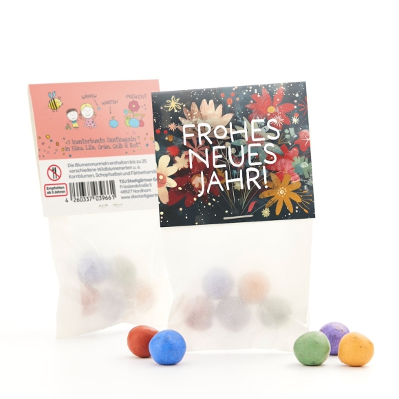 10 x 5 Blumenmurmeln "Frohes Neues Jahr" | Kleines Geschenke für Neujahr / Silvester | Neujahrgeschenke Silvester Geschenke