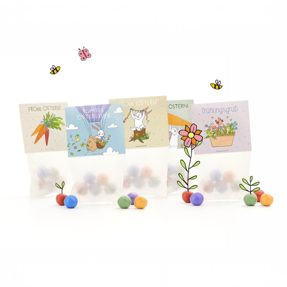 10x 5er Blumenmurmeln im Pergaminbeutel - 5x verschiedene Osterdesigns je 2x I Füllungs fürs Osternest & Osterkörbchen