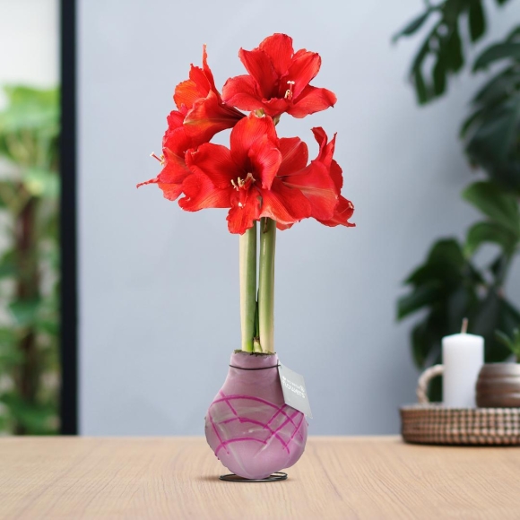Amaryllis rote No Water Blumen Pastell Design Pflegeleichte Zimmerpflanze 3 Farben Blühend - Lila Grün Rosa mit Muster