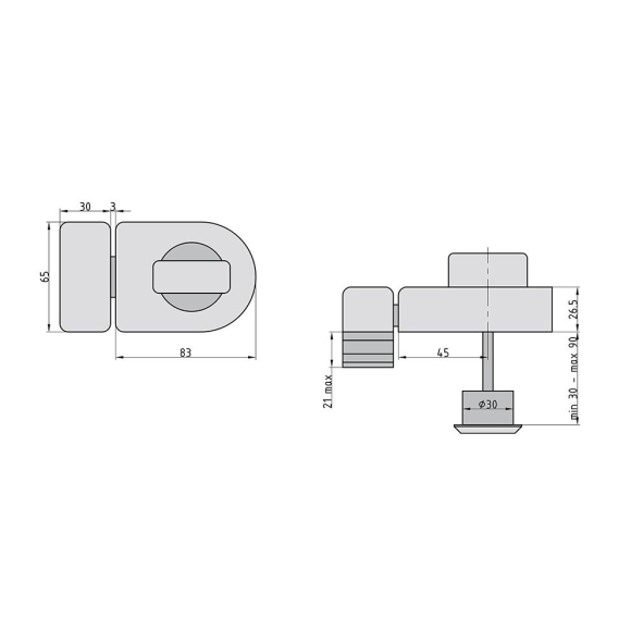BASI KS500R-45 Kastenschloss (abgerundet) Silber - SS