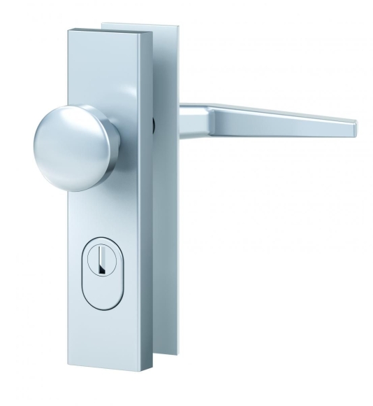 BASI Vollmaterial Schutzbeschlag in Alu SilberDrücker Garnitur für Profilzylinder aus hochwertigem Aluminium mit Schutzrosette in Alu Silber. Die Garnitur ist eckig und kommt mit einem Kurzschild. Perfekt geeignet für Kellertüren, Garagentüren, Haustüren, Wohnungstüren uvm.Technische DatenWechsel GarniturKurzschild eckigMaterial: AluminiumZylinderüberstand 10 - 17 mmInnen sichtbare VerschraubungFür Türstärke 38 - 42 mmVierkantstift (LxBxH) 72 x 15 x 8 mmSchutzrosetteLieferumfangVollmaterial Schutzbeschlag