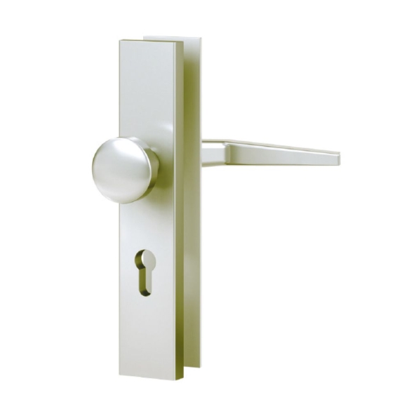 Der massive Vollmaterial-Schutzbeschlag der Marke BASI besteht aus hochwertigem Aluminium F2. Die Wechselgarnitur besteht aus einem runden Knopf außen und einem Drücker in Standard innen. Das eckige Langschild besitzt eine Schildstärke von 15 mm. Die Wechselgarnitur ist gemäß ÖNORM (österreichischer Norm) mit einem Abstand von 88 mm gefertigt. Der Beschlag besitzt eine vorgefertigte Lochung für einen Türzylinder - wo ohne Probleme ein Profilzylinder eingesetzt werden kann und die Türe somit abschließbar ist. Sie kann bei allen gängigen Wohneingangs- oder Haustüren mit einer Türblattstärke von 38-42 mm, sowohl DIN LINKS / DIN RECHTS eingesetzt werden. Innen Vierkantstift mit 8,5 mm – innen sichtbare Verschraubung. Massiver Vollmaterial-Schutzbeschlag für Eingangstüren gemäß Ö-NORMMit eckigem Langschild, 15 mm Schildstärke, Abstand 88 mm (ÖNORM) für Türstärken 38-42 mmDIN RECHTS / LINKS verwendbarWechselgarnitur, Außen: runder gerader Knopf, Innen: Klassischer Türgriff (Klinke) in StandardMaterial: Vollmaterial, hochwertiges Aluminium F2 - champagnerfarben, einfache Montage