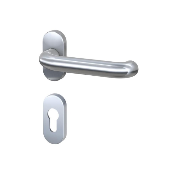 BASI 1/2 Schmalrahmen-Garnitur (innen) ZB 3150 PZ in EdelstahlDrücker Garnitur für Profilzylinder aus Edelstahl. Der Drücker ist in U-Form und die Rosette in oval.Diese Garnitur eignet sich bestens für Profilrahmentüren.Technische Details:- Edelstahl- Drücker in U-Form- Rosette in oval- Nicht sichtbare Verschraubung- Fest-/drehbare Drücker-Lagerung- Rückholfedermechanismus