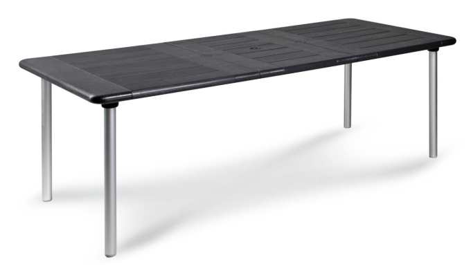 Der Tisch Tavolo besteht aus einem eloxiertem, pulverbeschichtetem Aluminiumgestell in Verbindung mit einer 40 mm starken Durel- TOP-Tischplatte aus einer robusten und stabilen Kunststoff-Hartschale in Holzoptik. Der elegante Tisch ist flexibel von 160 cm auf 220 cm verlängerbar. Die Mittelplatte läßt sich leicht verstauen und für die nötige Standfestigkeit auf unebenem Boden sorgen die Höhenausgleichschrauben an den Tischbeinen. Dank der hochwertigen Materialverarbeitung ist der Tisch sehr belastbar, UV-beständig und absolut wetterfest. Maße: 160/220 x 100 cm / Tischhöhe: 73 cm
