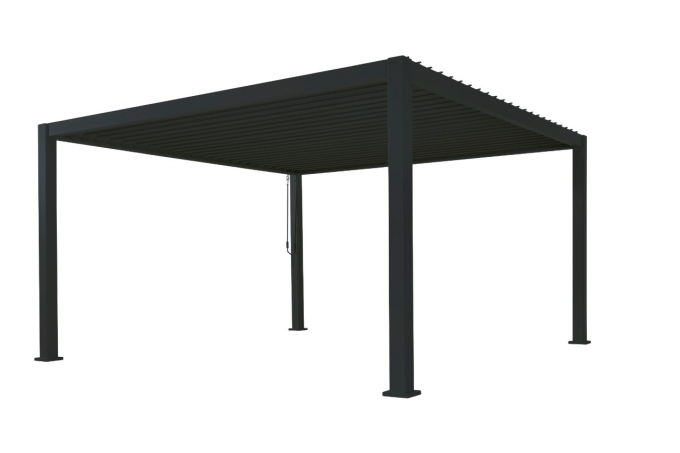 Die gesamte Konstruktion besteht aus einem stabilen, rostfreien Aluminiumgestell und ist absolut witterungsbeständig. Das verstellbare Lamellendach mit 17 cm breiten Lamellen , regelt die Luftzirkulation und den Sonneneinfall. In geschlossener Position ist das Dach regendicht und das Wasser wird über die Regenablaufrinne abgeführt. Die Lamellen sind mit einer Handkurbel individuell und einfach verstellbar. Noch mehr Schutz gegen Wind und Wetter bieten die nachträglich ergänzenden Seitenrollos in verschiedenen Maßen. Die 11x11 cm starken Pfosten mit innenliegender Profilkante und Sockel zur Bodenverankerung sind besonders standfest. Die umlaufende Dachzarge ist stark dimensioniert, stabil und verwindungssicher durch Eckverbinder. Maße: 360x360x250cm