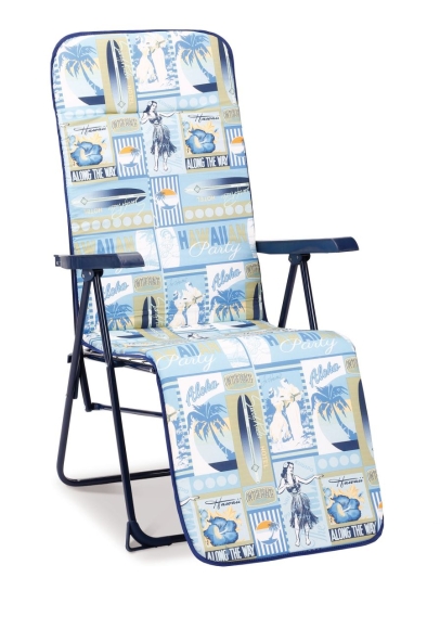 Die Relaxliege Chiemsee besitzt ein stabiles Stahlrohrgestell mit wetterfester Beschichtung in der Farbe blau. Der unempfindliche und strapazierfähige Bezugsstoff ist 2 cm stark und besteht aus Polycotton. Das Fußteil und Rückenlehne lassen sich mehrfach verstellen. Die Liege ist zusammenklappbar und überall gut zu verstauen. Besonders geeignet für Camping. Maße: Gesamtmaß BxTxH in cm: 58x75x108 / Sitzhöhe: 42 cm / Liegefläche: 50x165 cm / Höhe der Armlehne: 63,5 cm / Höhe der Rückenlehne: 75 cm