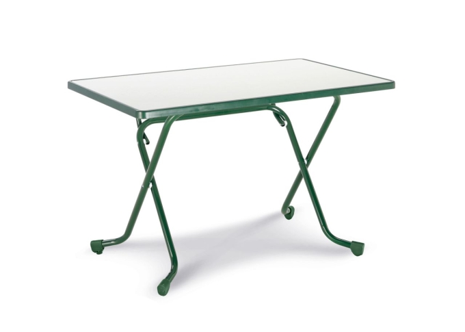 Der Scherenklapptisch Primo besteht aus einem robusten Stahlrohrgestell mit einem praktischen Scheren-Klappmechanismus. Die wetterfeste und U.V. beständige Tischplatte ist belastbar, kratzfest und hitzebeständig. Mit zusätzlich farblich auf das Gestell angepasstem Schutz-/Kunststoffumleimer an der Tischplatte. Der Tisch ist mit wenigen Handgriffen zusammenklappbar und lässt sich platzsparend verstauen. Maße: eckig 110 x 70 cm / Tischhöhe: 70 cm