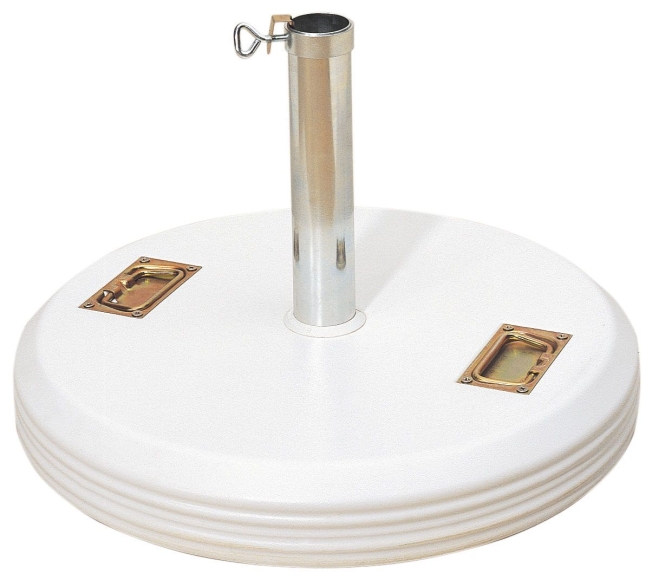 Der Schirmständer besteht aus einer betongefüllten Kunststoffschale mit Trageriffe. Er ist für Schirme mit einem Stockmaß von 55 mm Ø geeignet.