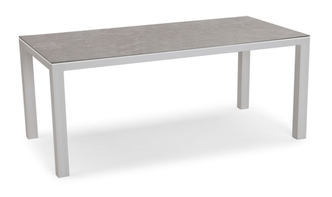 Neuentwickelte Tischoberfläche aus einem Glasträger mit gebrannter Keramikoberfläche, daher absolut kratzfest und bruchsicher. Die 6 mm starke Tischplatte hat eine dezent strukturierte Marmoroptik, die farblich auf die jeweilige Tischfarbe abgestimmt ist. Das stark dimensionierte Tischgestell besteht aus hochwertigem Aluminium und ist in vier verschiedenen Größen und drei Farben erhältlich. Die Tischbeine sind mit Höhen-Ausgleichsschrauben ausgestattet, somit steht der Tisch auf unebenem Boden sehr stabil. Maße: 210 x 90 cm / Tischhöhe: 74,5 cm