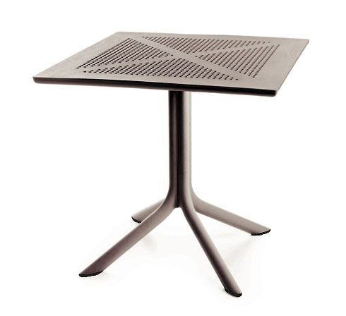 Moderner Tisch aus glasfaserverstärktem Polypropylen. Das designorientierte Vier-Beingestell ist im unteren Bereich mit einem zusätzlichen Gewicht ausgestatten und verleiht diesem neuen Modell eine sehr hohe Standfähigkeit. Die sehr stabile und bruchsichere Tischplatte wurde mit einer feinen Lochmuster-Struktur gestaltet und kann mit den Abmessungen 80 x 80 cm ideal auch zu einer Tafel zusammengestellt werden. Maße: eckig 80 x 80 cm / Tischhöhe: 74,5 cm