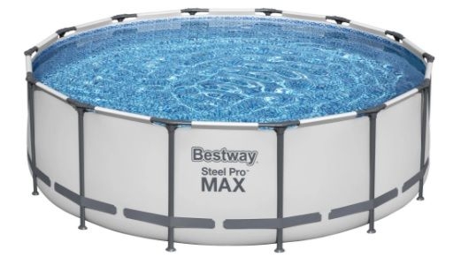 Steel Pro MAX™ Frame Pool, 427 x 122 cm, Komplett-Set mit Filterpumpe, rund, weiß Es gibt nichts Besseres als einen eigenen Pool im Garten! Diese Steel Pro MAX™ Pool Komplett-Set von Bestway® bietet die besonders langlebige Lösung durch eine robuste Konstruktion. Das FrameLink System™ des korrosionsbeständigen Stahlrahmens gewährleistet die Stabilität und sichere Verbindung der Rahmenelemente. Die Poolfolie besteht aus widerstandsfähigem, verstärktem DuraPlus™ -Material mit enorm reißfesten Eigenschaften. Auf- und Abbau des Pools sind ebenso einfach wie die Lagerung außerhalb der Badesaison. Es wird kein weiteres Werkzeug benötigt.AusstattungBei diesem Pool Komplett-Set werden eine Filterpumpe, eine Sicherheitsleiter und eine Abdeckplane gleich mitgeliefert. Das integrierte Ablassventil ermöglicht den Anschluss an einen Gartenschlauch, um das Wasser schnell und einfach an beliebiger Stelle abzulassen. Verbringen Sie den perfekten Sommer im Wasser des Steel Pro MAX™ Pools von Bestway®! Produktdetails Größe: Ø 427 x 122 cm Wasserkapazität zu 90 % gefüllt: 15.232 Liter Poolfolie aus robustem DuraPlus™-Material Farbe: grau Innenverkleidung in Kieselmosaik-Optik Einfacher Aufbau ohne Werkzeug möglich Extrem starre Rahmenkonstruktion mit Korrosionsschutz für erhöhte Festigkeit und Haltbarkeit FrameLink System™ mit T-Verbindern aus Kunststoff verhindert Rostschäden zwischen den Stangen und schützt vor Verformungen PVC-Band sorgt für extra Stabilität der Seitenwände Integriertes Ablassventil mit Gartenschlauchadapter Im Pool-Set enthaltenes Zubehör:Flowclear™ Filterpumpe #58386 3. Flowclear™ Filterkartusche #58094 Gr. II (10,6 x 13,6 cm) Flowclear™ Sicherheitsleiter #58331 122 cm Flowclear™ PVC-Abdeckplane #58248 Selbstklebender Reparaturflicken