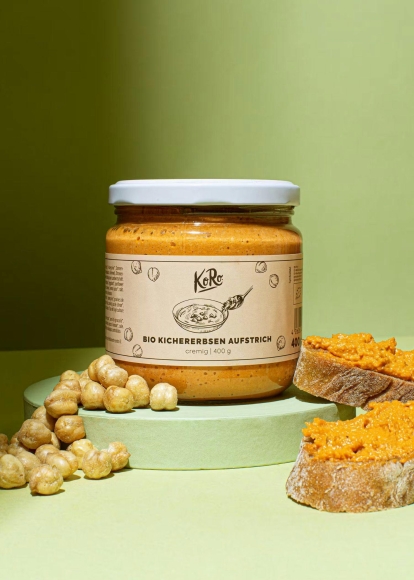 Veganer Brotaufstrich mit Kichererbsen-Ohne Zuckerzusatz*-Auch als Dip, für Dressings oder zum Verfeinern von Aufläufen, Suppen & Co. geeignet-Mit Rapsöl, Sonnenblumenkernen, Aubergine und Möhren-Zutaten aus kontrolliert biologischem Anbau
