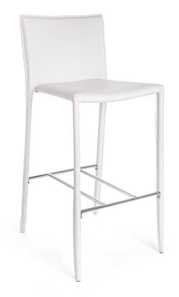 Filigraner Barhocker mit Rückenlehne und Bezug aus Kunstleder. Zur Stabilität und Ablage für die Füße wurden im unteren Bereich Metallstreben aus Metall / Chrom verarbeitet somit ist der Barhocker Catherine von Bizzotto trotz der zierlichen Formensprache sehr stabil. Das hochwertige helle Kunstleder ist zudem sehr pflegeleicht und einfach zu reinigen.