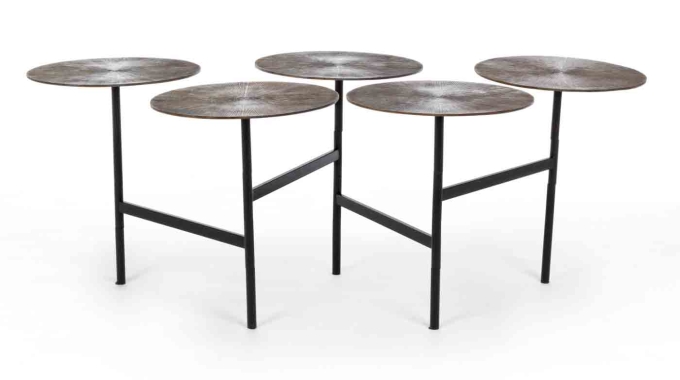 Der Beistelltisch Kalindi überzeugt mit seinem modernen Design. Die Tischplatten wurden aus Aluminium gefertigt und haben eine Feinbearbeitung erhalten. Das Gestell ist aus Stahl und ist verstellbar.