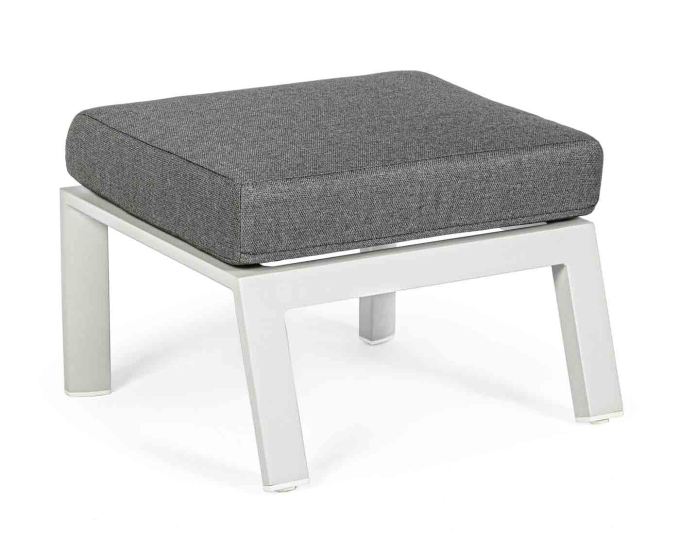 Fußhocker Kledi mit pulverbeschichtetem Metallgestell. Das Kissen ist abnehmbar und besteht zu 100% aus Olefin Stoff (Polypropylen)