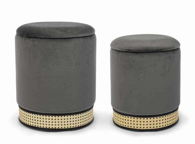Bizzotto - Pouf Milena 2er-Set mit Samt-Optik Dunkelgrau